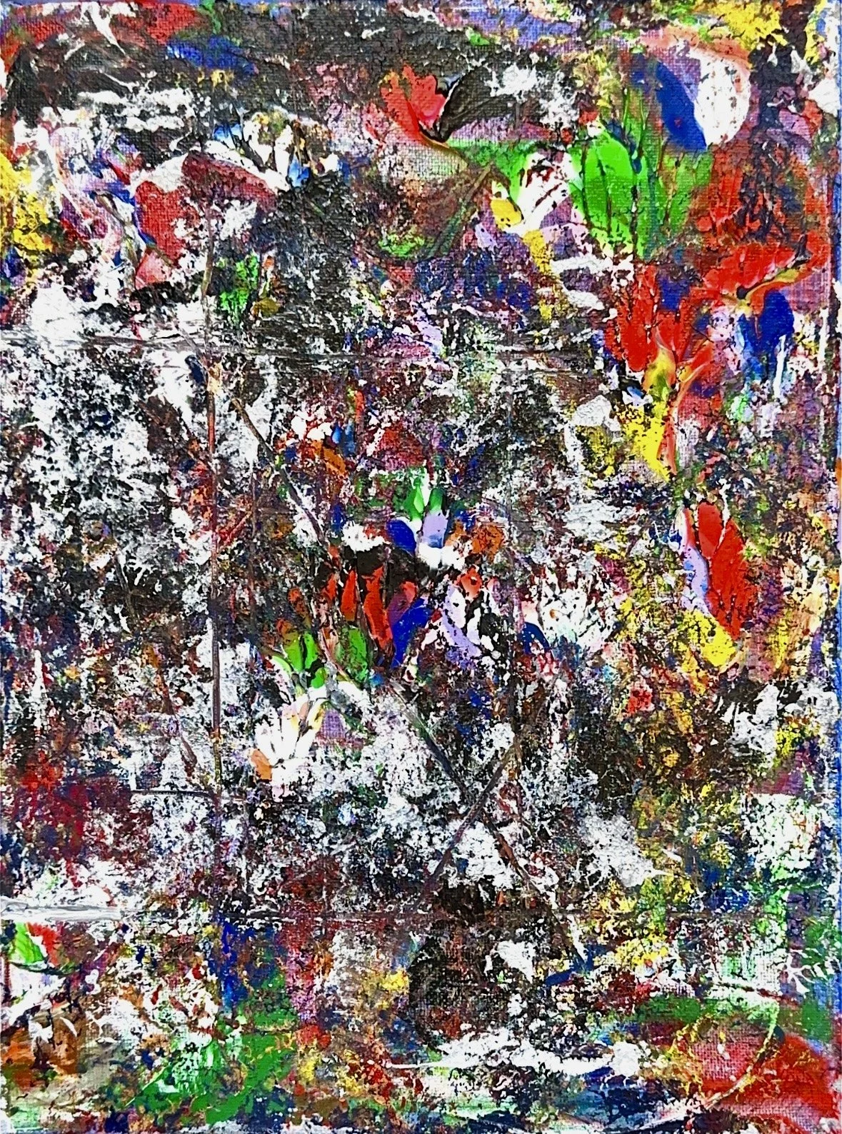 Acrylic paint on canvas and paper (most are in a frame)